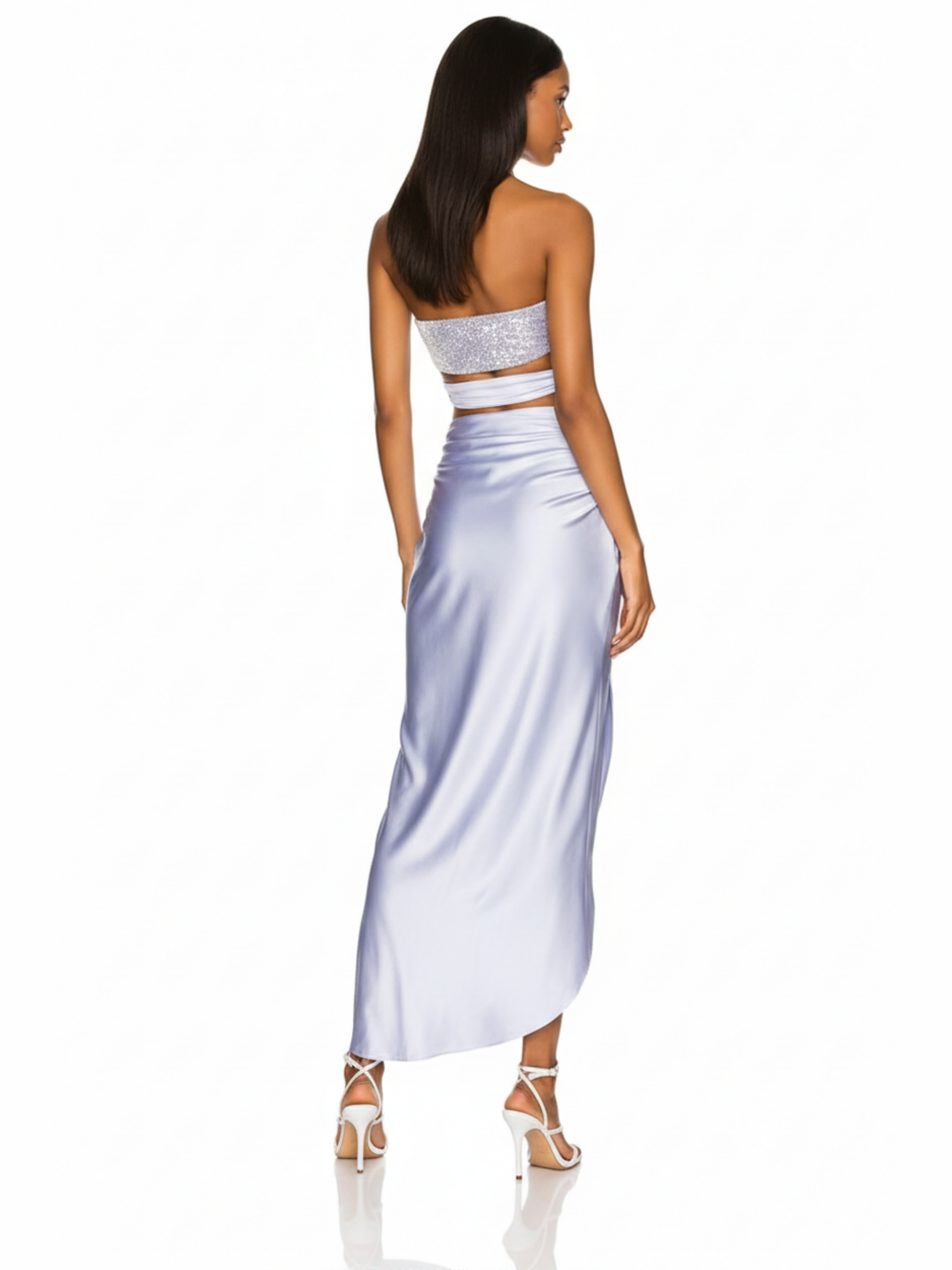 Allure Mayo Seti, yumuşak lila tonlarının ışıltıyla buluştuğu, feminen ve etkileyici bir siluet sunar. Parlak dokulu üst parça, zarif askı detaylarıyla omuzlarda ince bir ışıltı yaratırken, vücudu nazikçe saran formu kusursuz bir denge oluşturur. Drapeli kesimiyle öne çıkan alt parça ve akışkan pareosu, her adımda zarafeti vurgular.